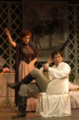 В дополнение к блестящим текстам классика артисты исполнят популярные хиты XIX-XX веков в авторской компиляции Бориса Бендерина. Это действо дополняется бесшабашными танцами. Такая нарочито грубая подача — идея талантливого балетмейстера Ирины Леваковой. Чеховская юмореска, с изяществом разыгранная актерами, живое исполнение «жестоких» романсов и песен, популярных в 30-40-ее гг. XX века надолго оставят ощущение легкого и праздничного зрелища в памяти зрителей.