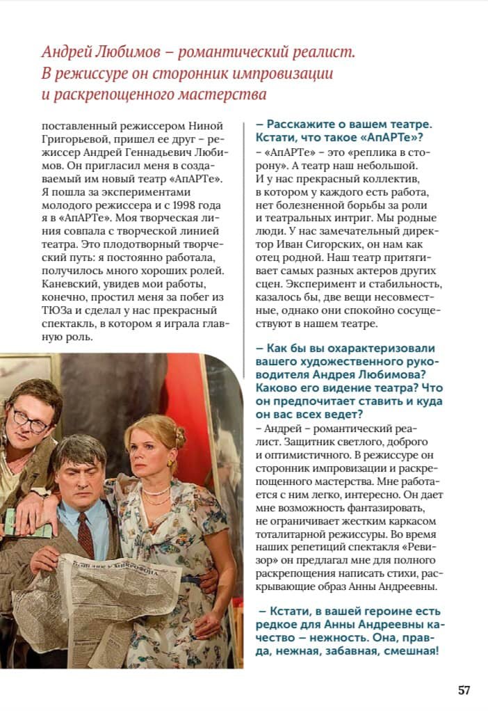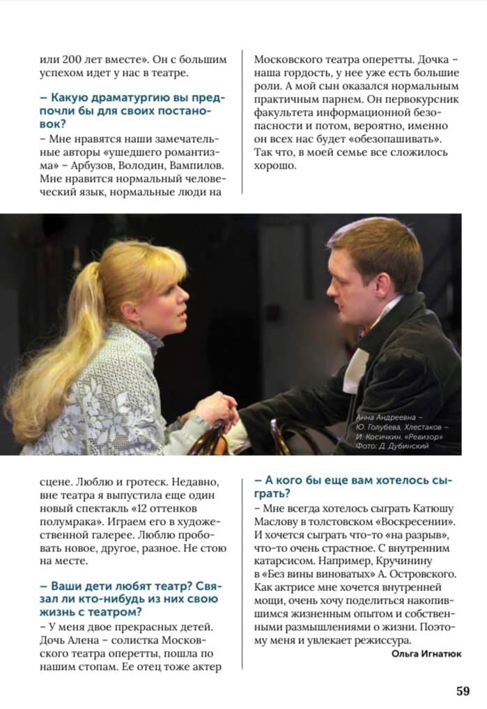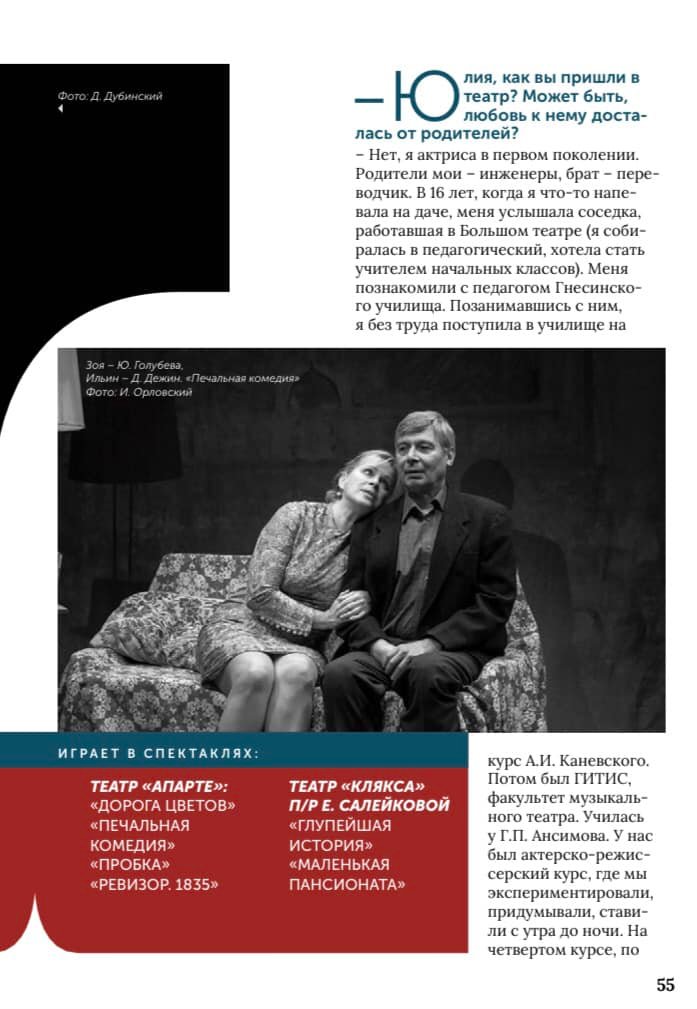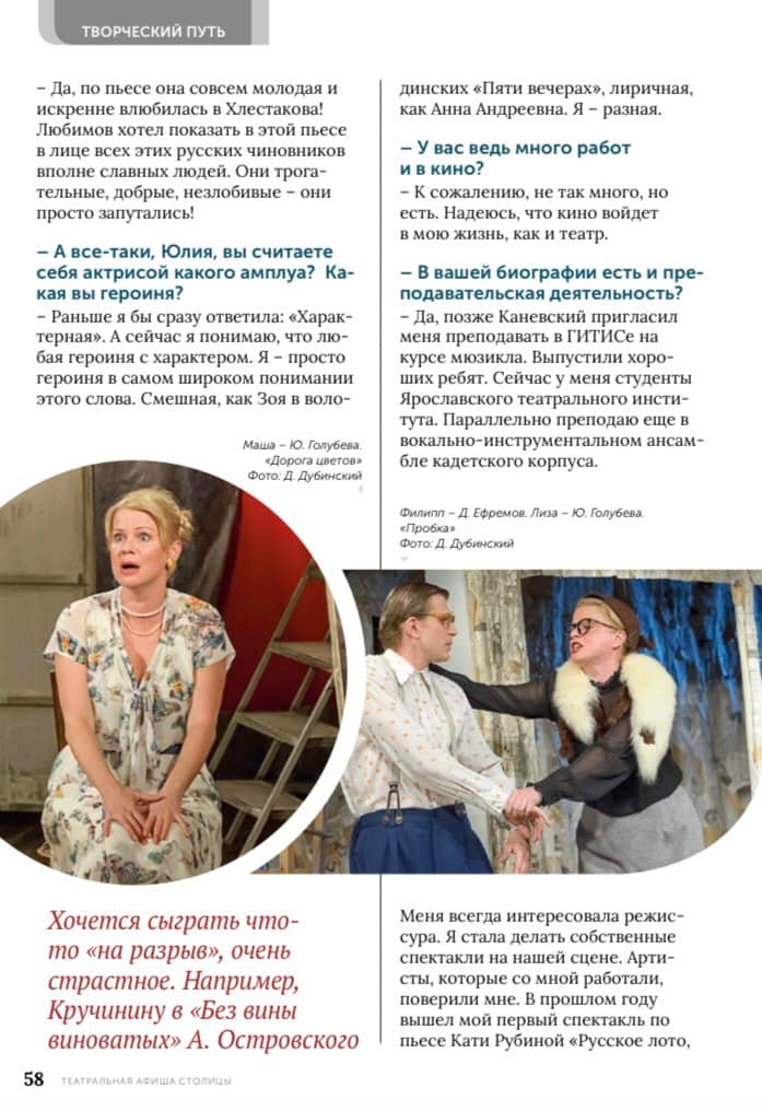 Интервью Юлии Голубевой для журнала «Театральная афиша столицы»