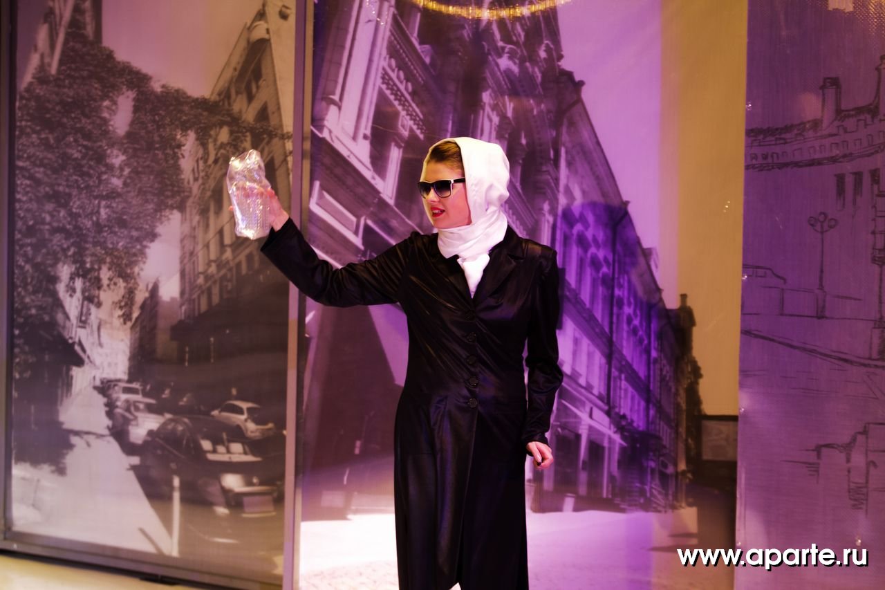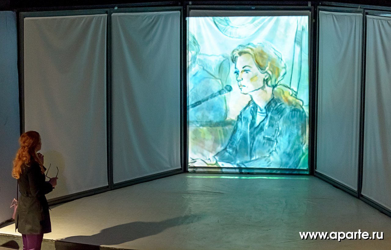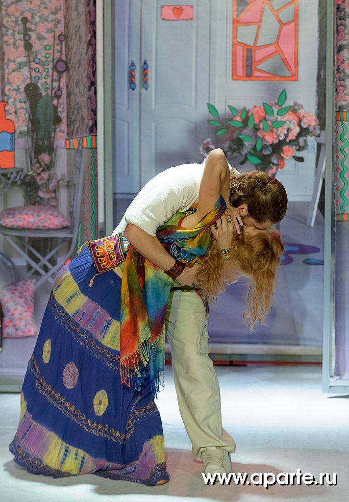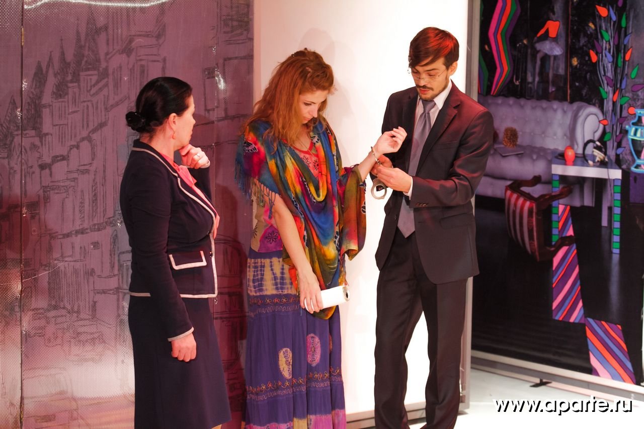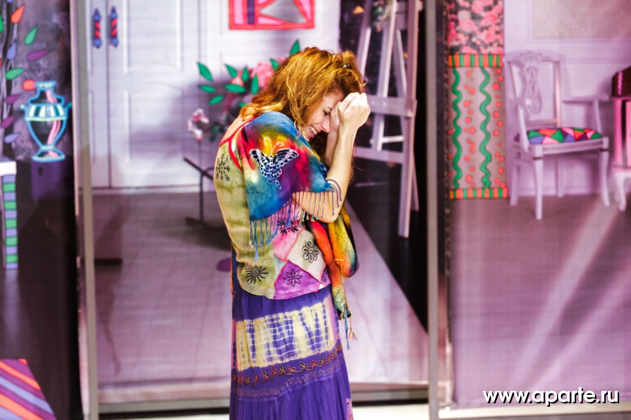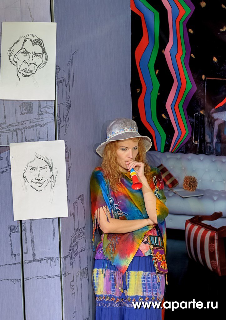 Яркое визуальное решение спектакля – с вращающимися экранами и стильным антуражем, то угрожающе-аскетичным, то карнавально-пестрым, ностальгически «хипповым» - тоже становится данью этой множественности полутонов и тонкой игре ума Кавалердамы Ордена Британской Империи (этой награды писательница была удостоена в 1956 году).