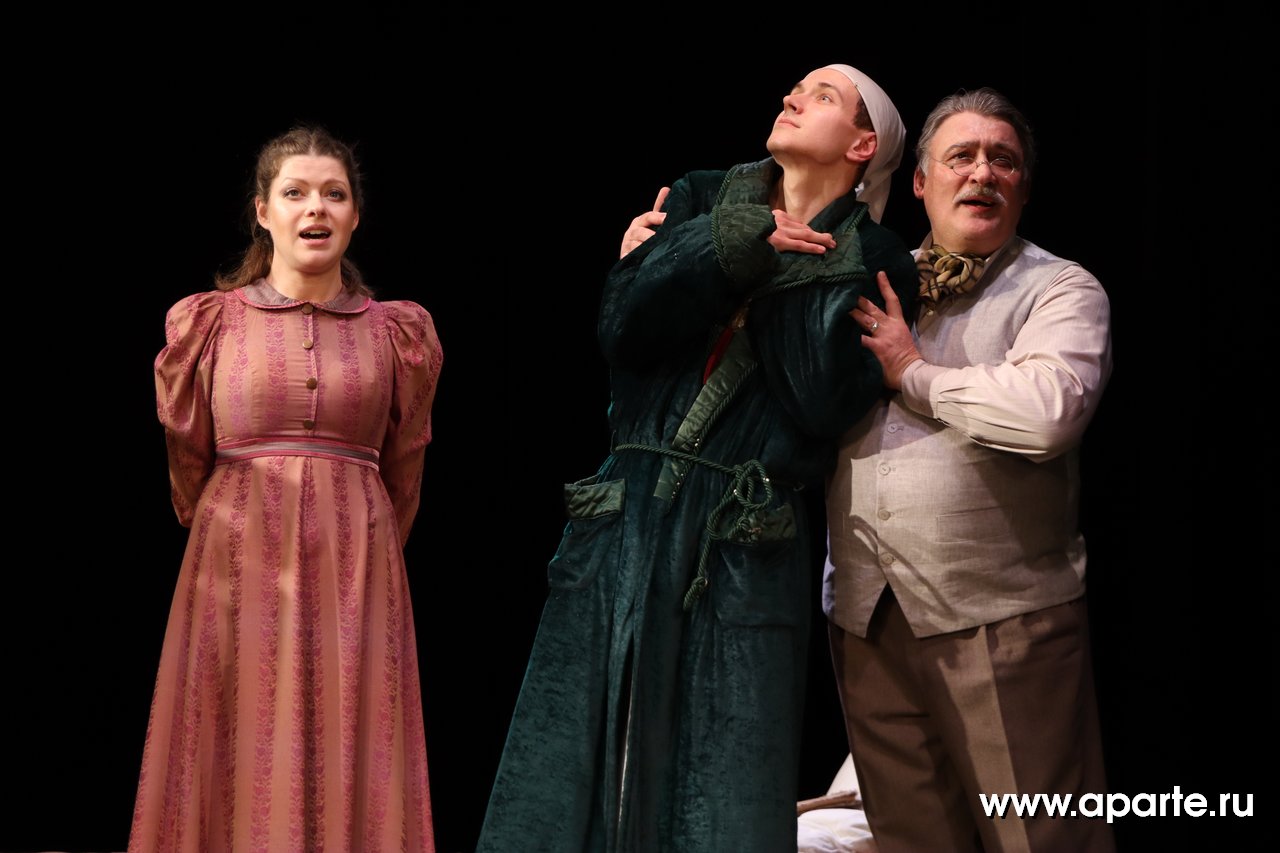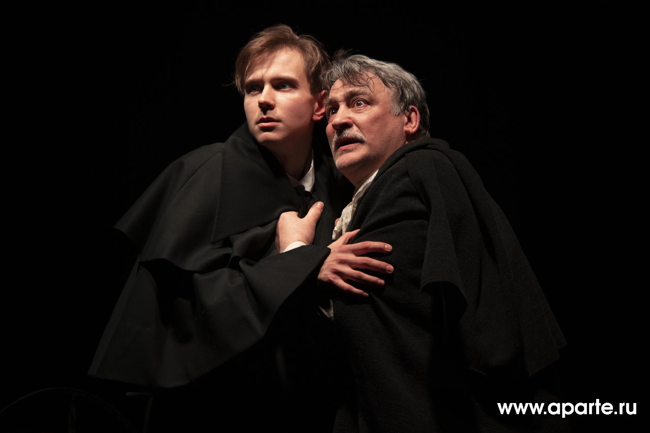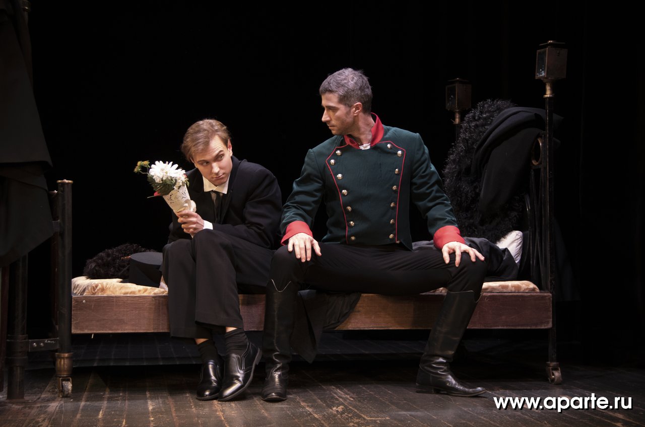 Гарольд Стрелков, режиссер спектакля и автор сценической версии, извлек из канонических «Станционного смотрителя» и «Истории села Горюхина» тему, никем доселе не замеченную: молодой сочинитель Иван Петрович Белкин так увлекается своими героями, так сопереживает их придуманным судьбам, что сжигает свою собственную. Белкин у Пушкина и в самом деле умирает тридцати лет от роду, и разгадка его тайны представлена в спектакле поэтично и остроумно, с интонацией истинно пушкинской. Приметы эпохи на сцене мастерски соединены с «надмирностью» ситуации (сценография Александра Боровского), а игру актеров отличает редкостное чувство ансамбля. Белкин (Андрей Попов) вдохновенно творит параллельную реальность, и старая ключница мгновенно превращается в юную Дуню (Антонина Комиссарова), помещик Трофилин — в Самсона Вырина, слуга — в красавца гусара (Иван Косичкин, Матвей Жизневский). Виртуозно меняет обличья актер Владимир Воробьев: он и угрюмый ямщик, и чопорный доктор, и сам... Петербург.